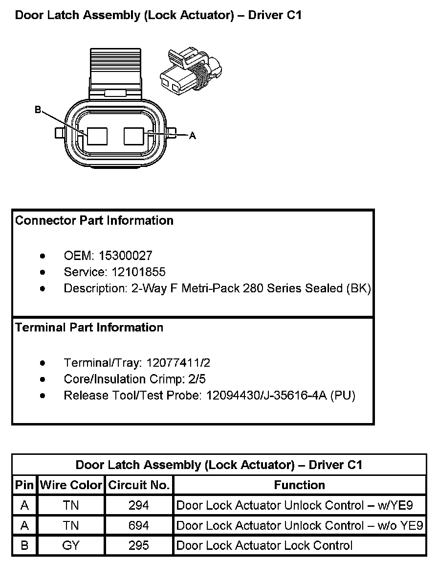 Door Latch Assembly (Lock Actuator) - Driver C1: