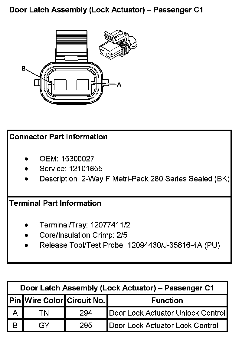 Door Latch Assembly (Lock Actuator) - Passenger C1: