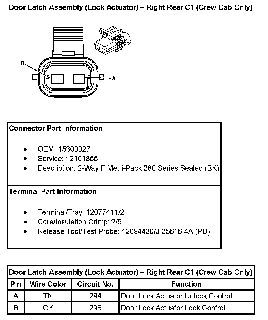 Door Latch Assembly (Lock Actuator) - Right Rear C1 (Crew Cab Only):