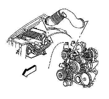 8. Important: Align the arrow at the throttle body end of the duct with the throttle body attaching stud.