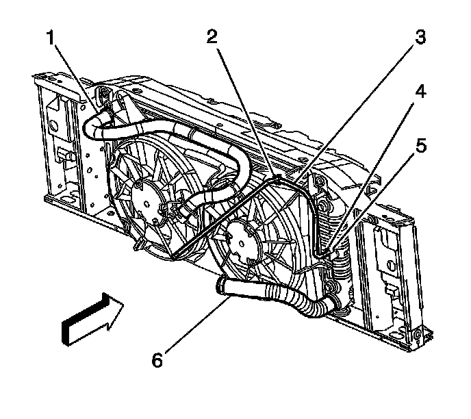 5. Install the inlet hose clip to the fan shroud.