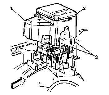 3. Remove the electrical center brace cover assemble by lifting the cover (3) outwards to clear the tabs.