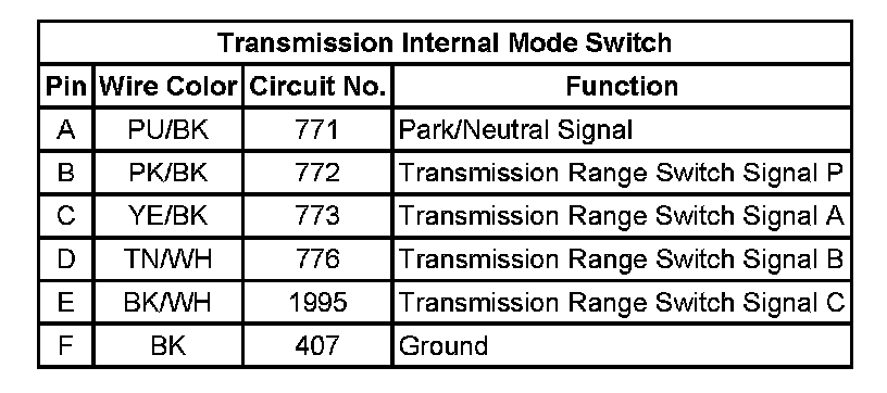 Automatic Transmission Internal Connector End Views