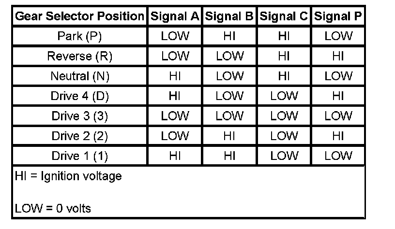 Transmission Range Switch Logic: