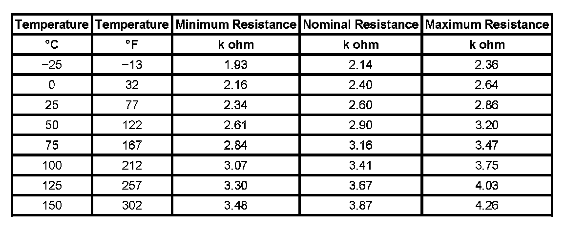 Temperature Versus Resistance (Speed Sensor):