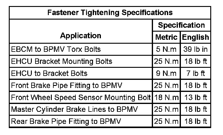 Fastener Tightening Specifications: