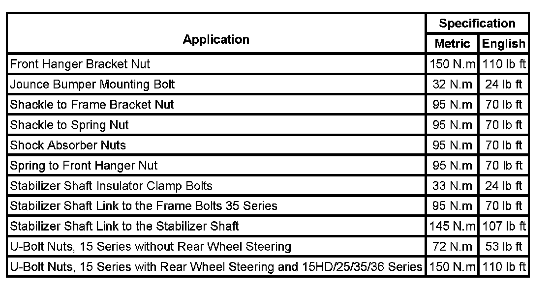 Fastener Tightening Specifications: