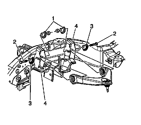 1. Remove the upper control arm nuts and adjuster cams (2).