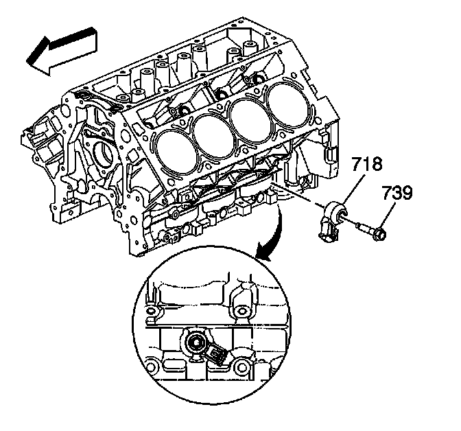 3. Remove the knock sensor bolt (739) and knock sensor (718).