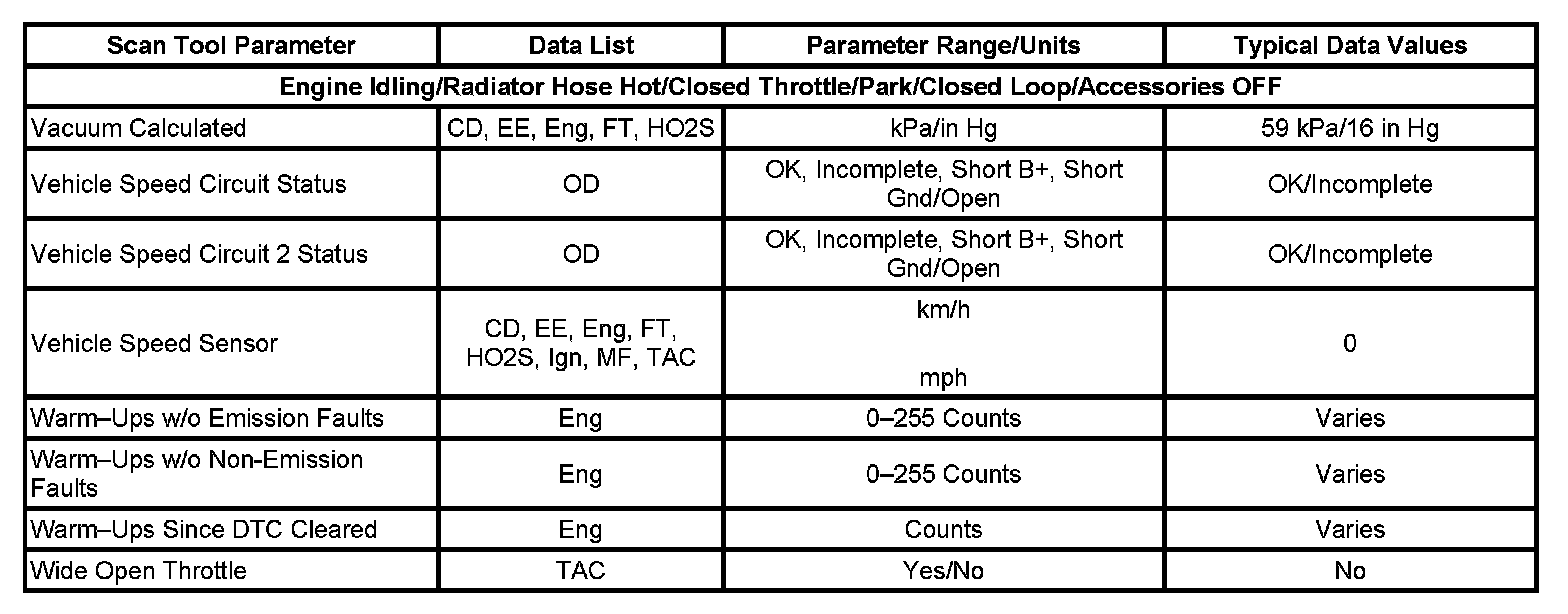 The column labeled Data List indicates where a parameter can be located on the scan tool. Refer to the scan tool operating manual for the exact locations of the data lists. The following is a description of each term listed: