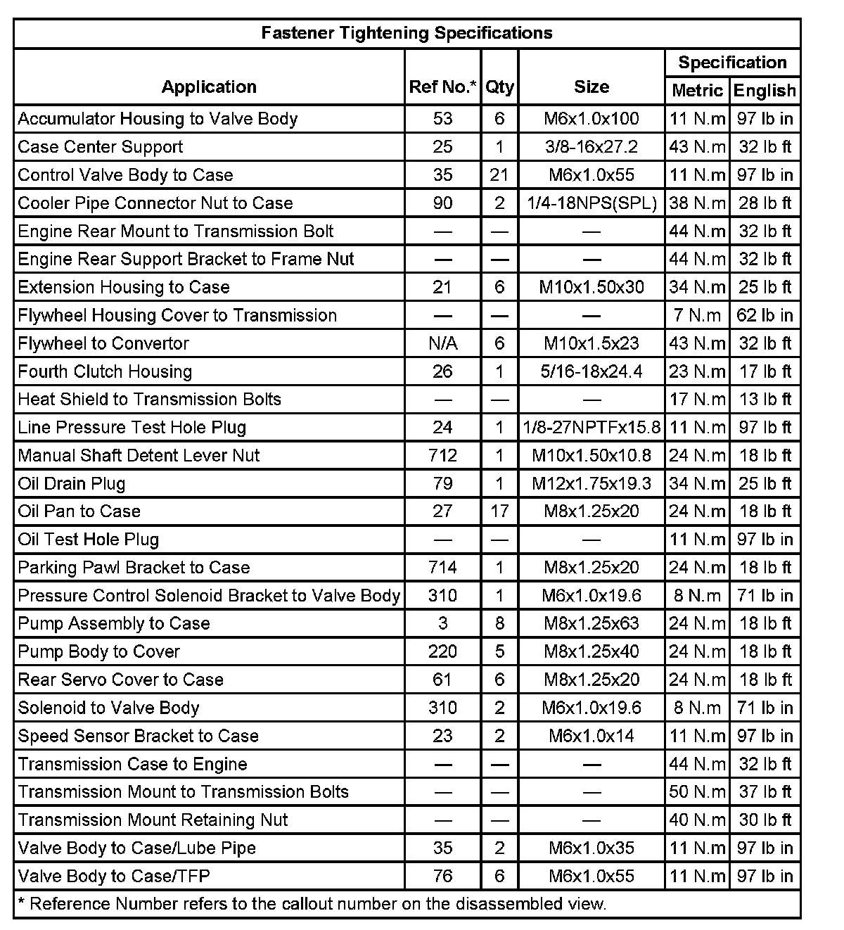 Fastener Tightening Specifications: