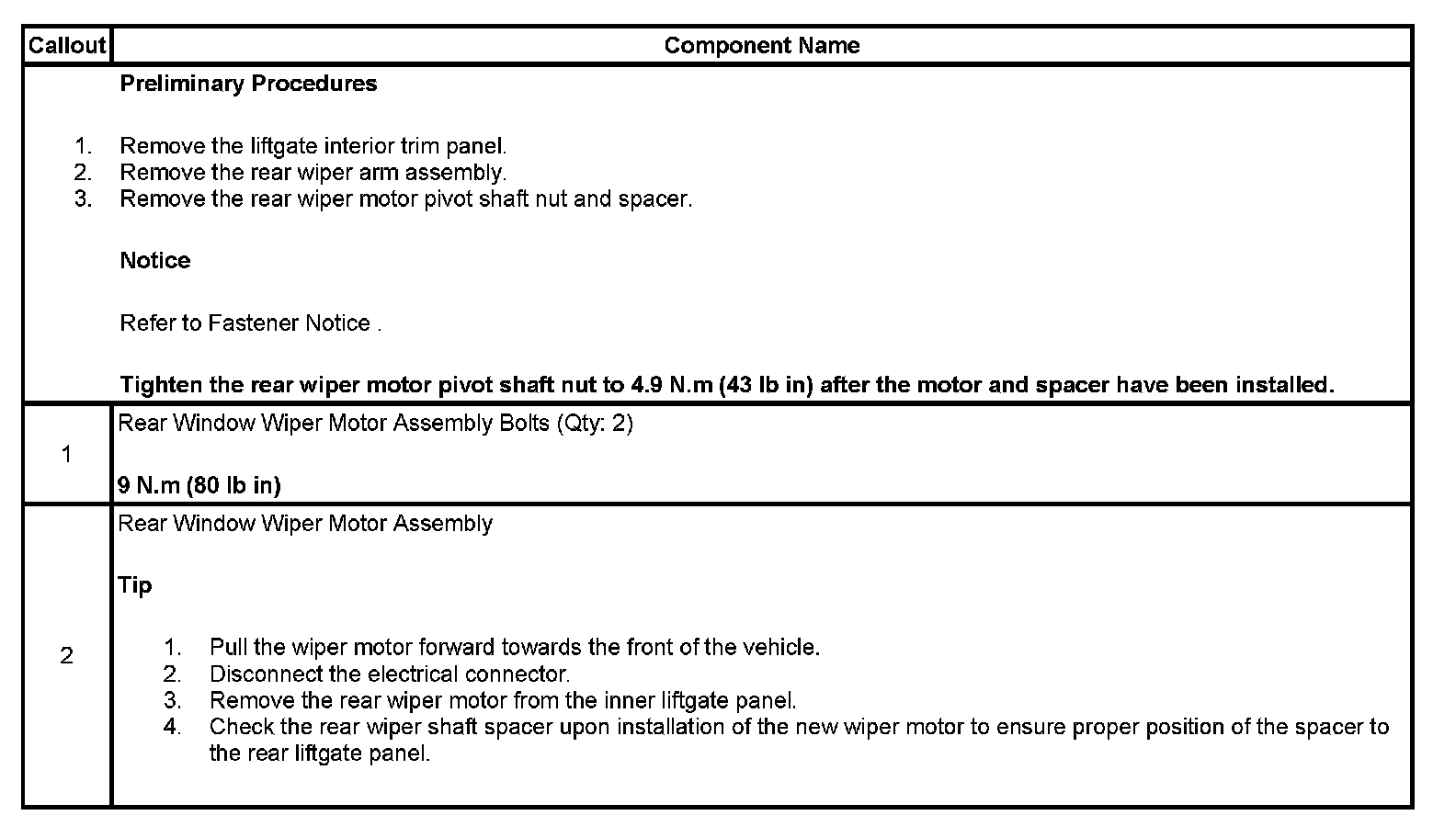 REAR WINDOW WIPER MOTOR REPLACEMENT
