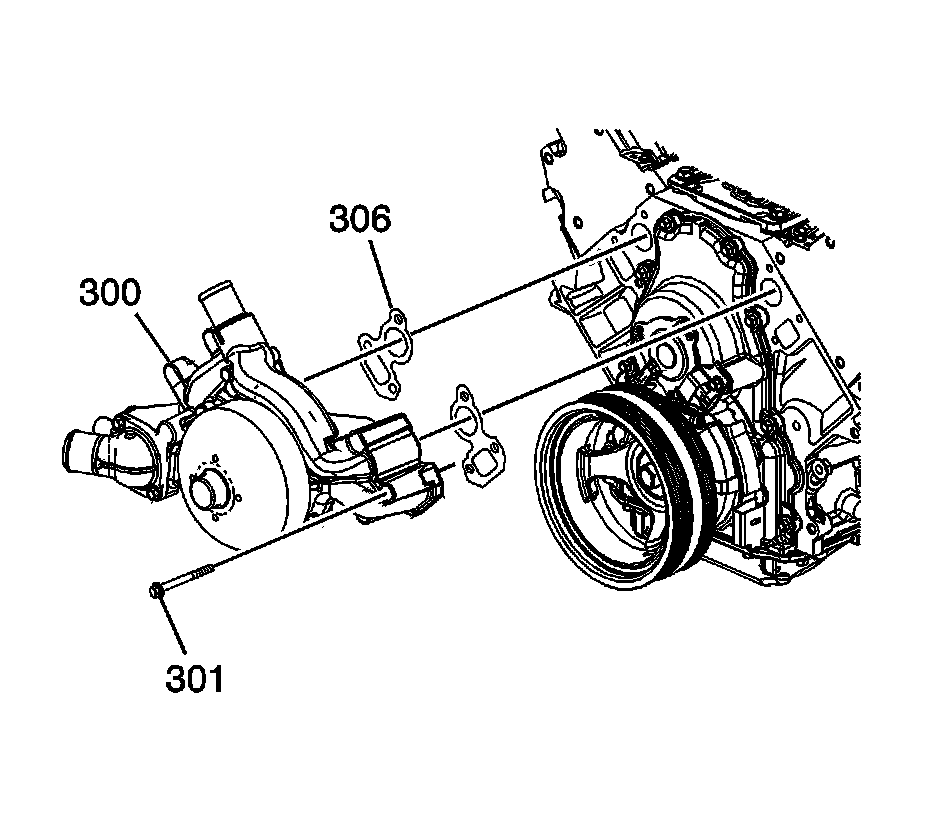 1. Position the water pump (300) and NEW gaskets (306) to the engine block.