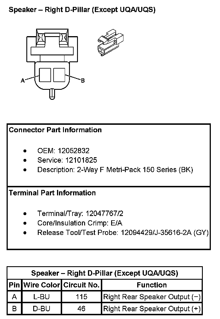 Speaker - Right D-Pillar (Except RPO Codes UQA/UQS):