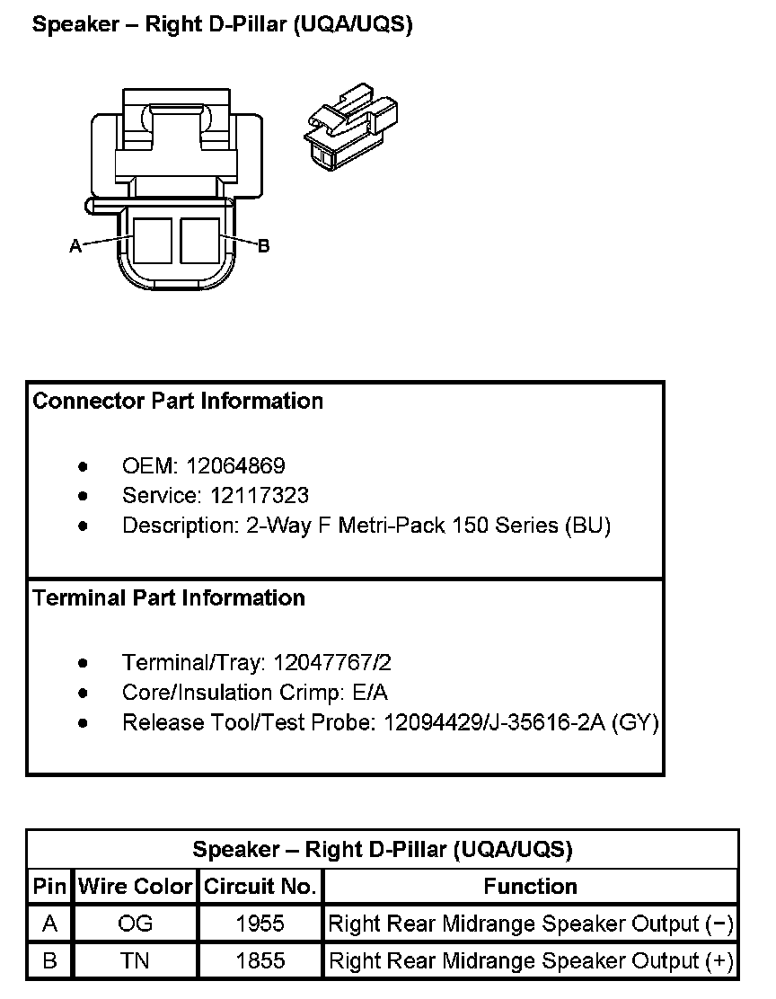 Speaker - Right D-Pillar (With RPO Codes UQA/UQS):