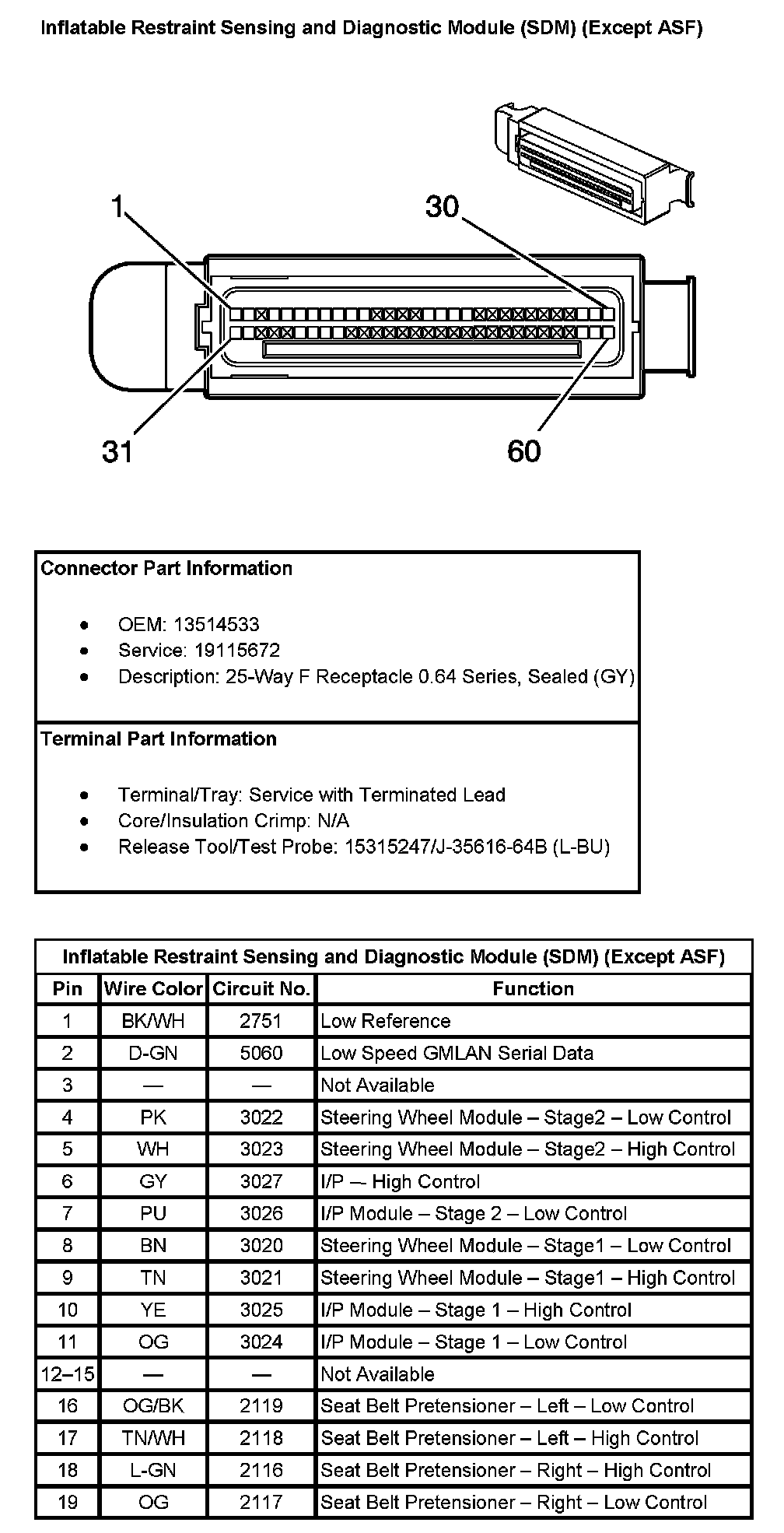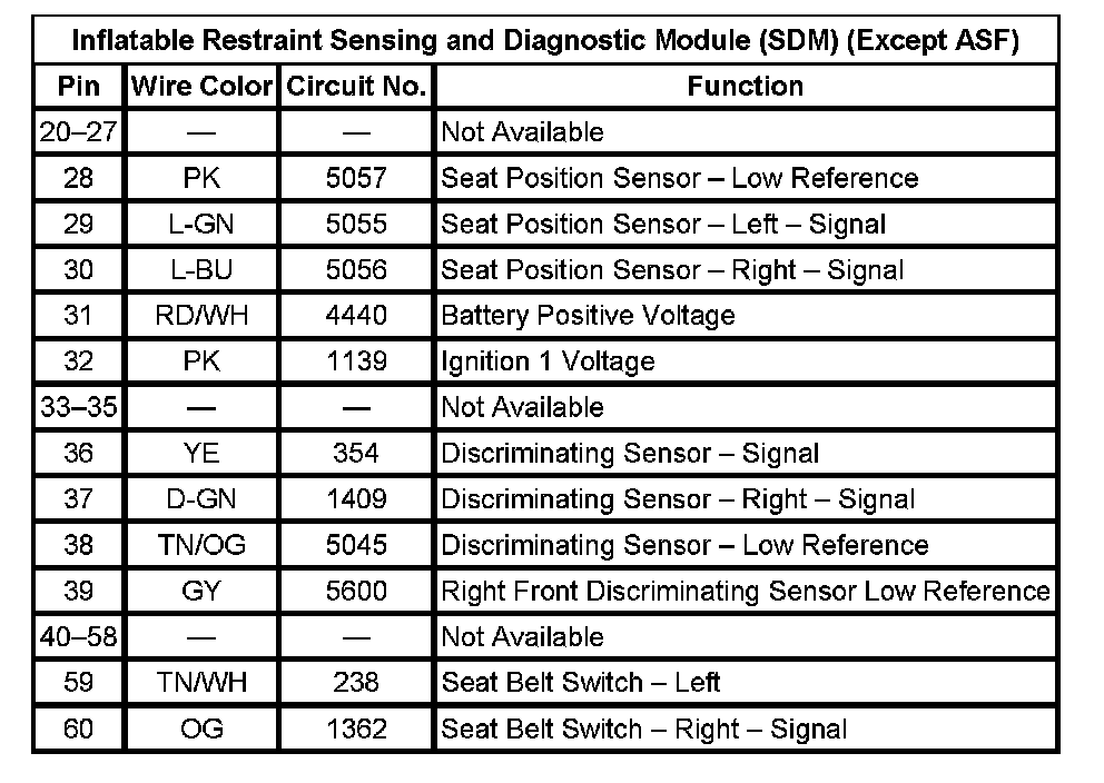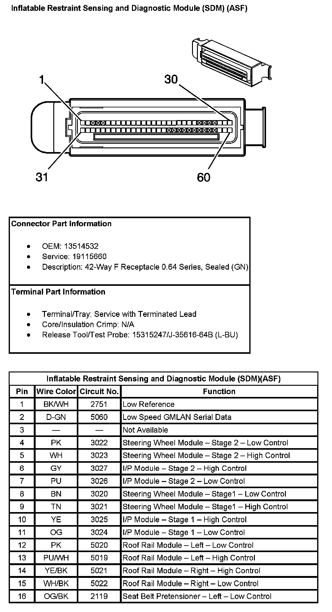 Inflatable Restraint Sensing And Diagnostic Module (SDM)(With RPO Code ASF) (Pin 17 To 60):