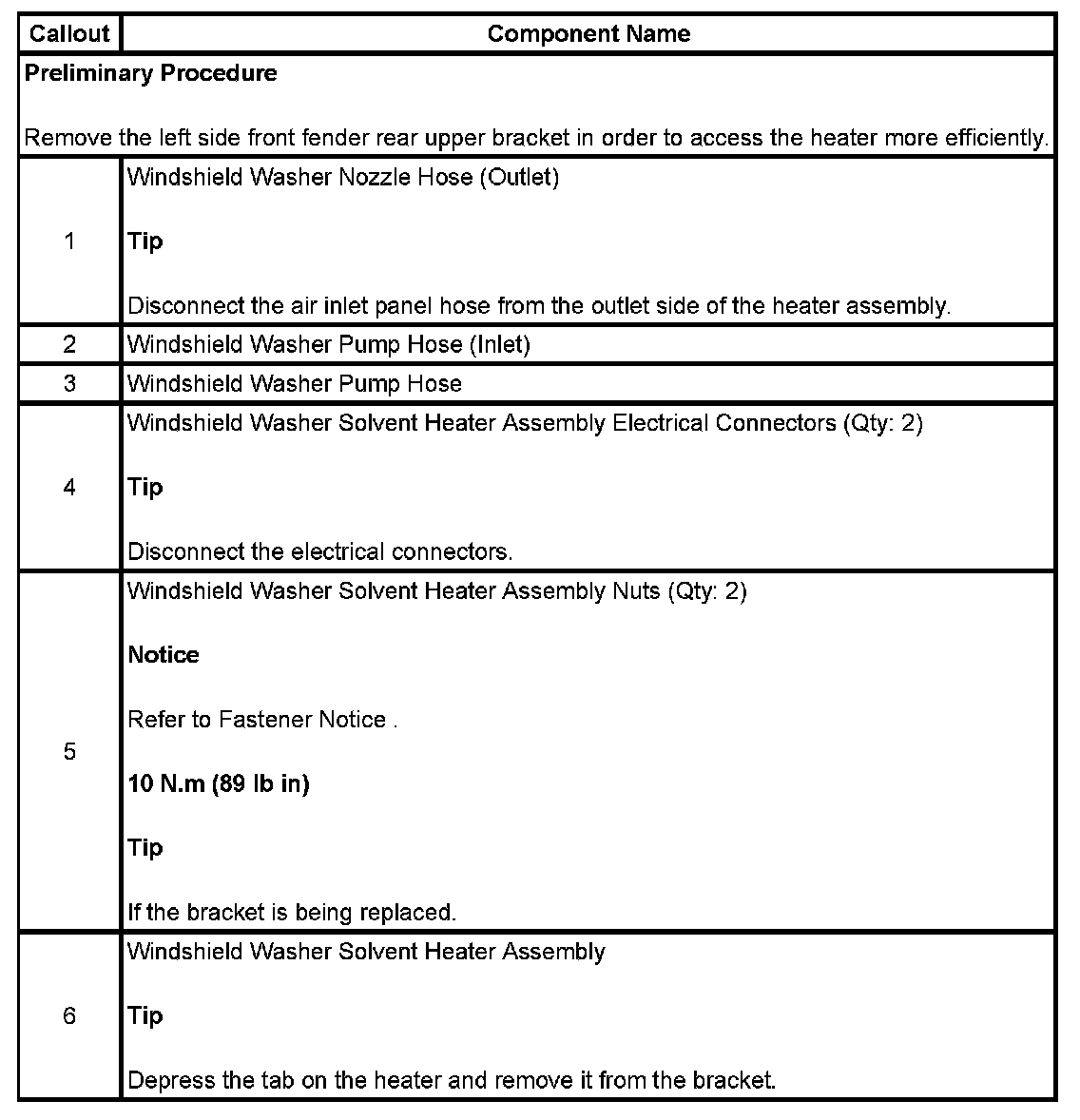 WINDSHIELD WASHER SOLVENT HEATER REPLACEMENT