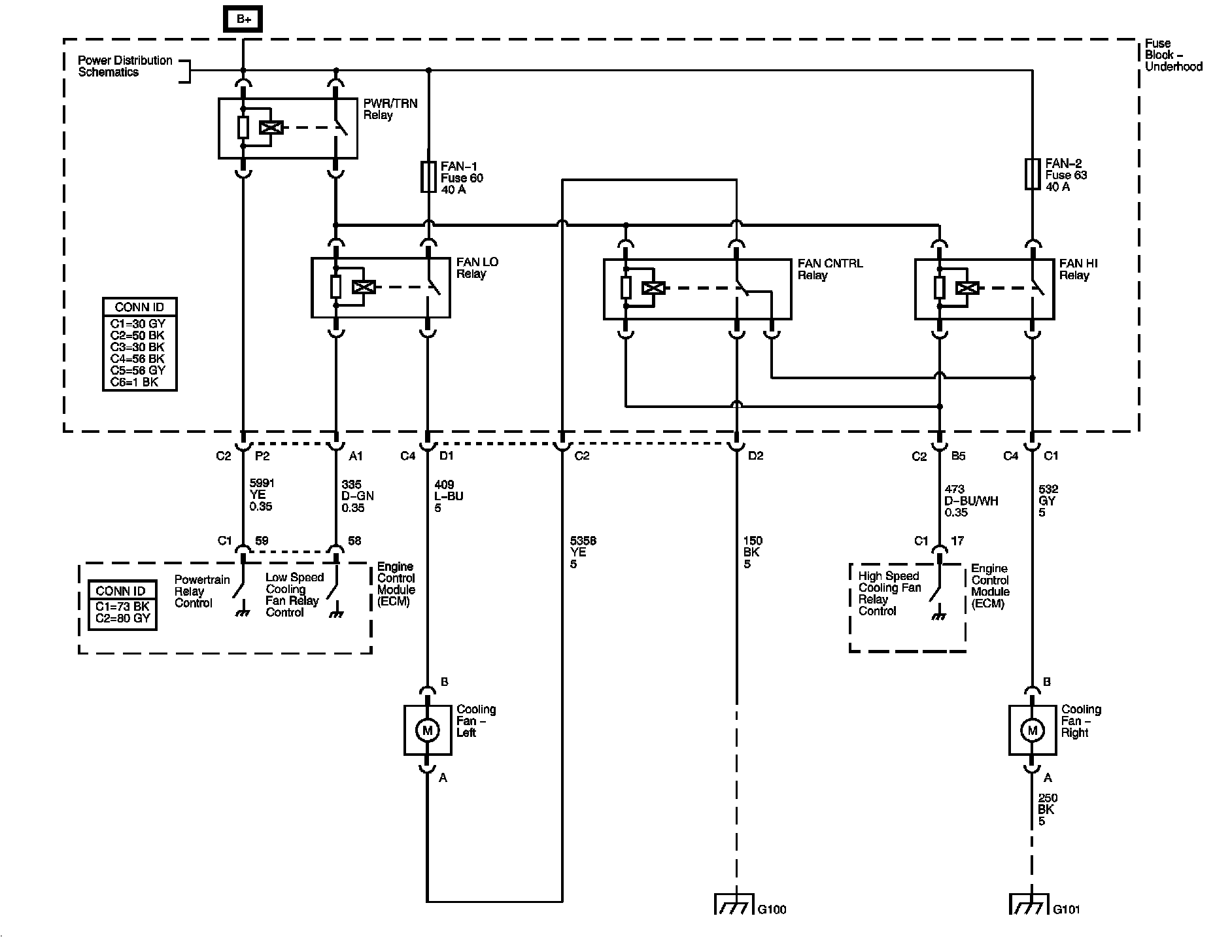 The locations for the Connectors, Grounds, Splices, and Grommets shown within these diagrams can be found via their numbers at Vehicle Locations.