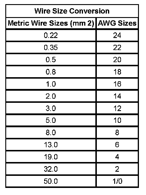 Wire Size Conversion: