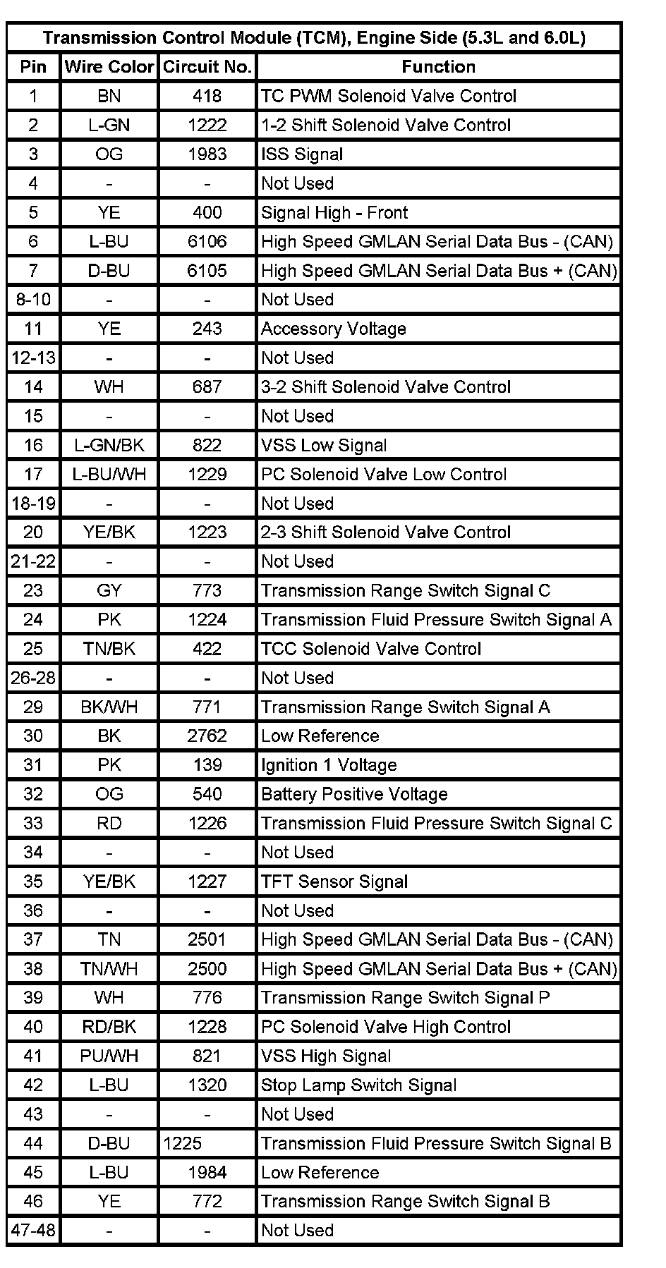 Transmission Control Module (TCM), Engine Side (5.3L and 6.0L):