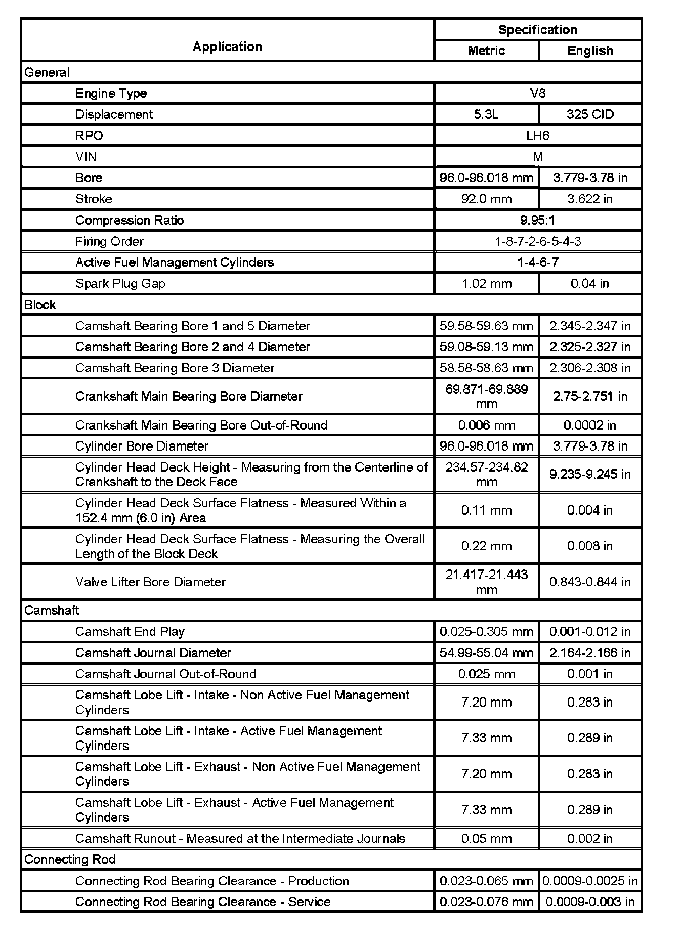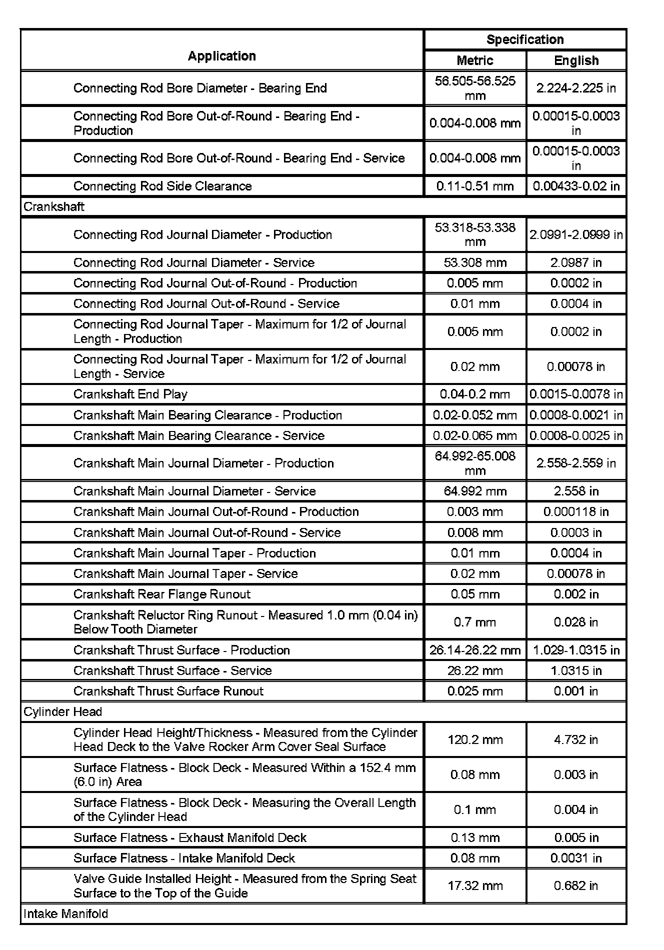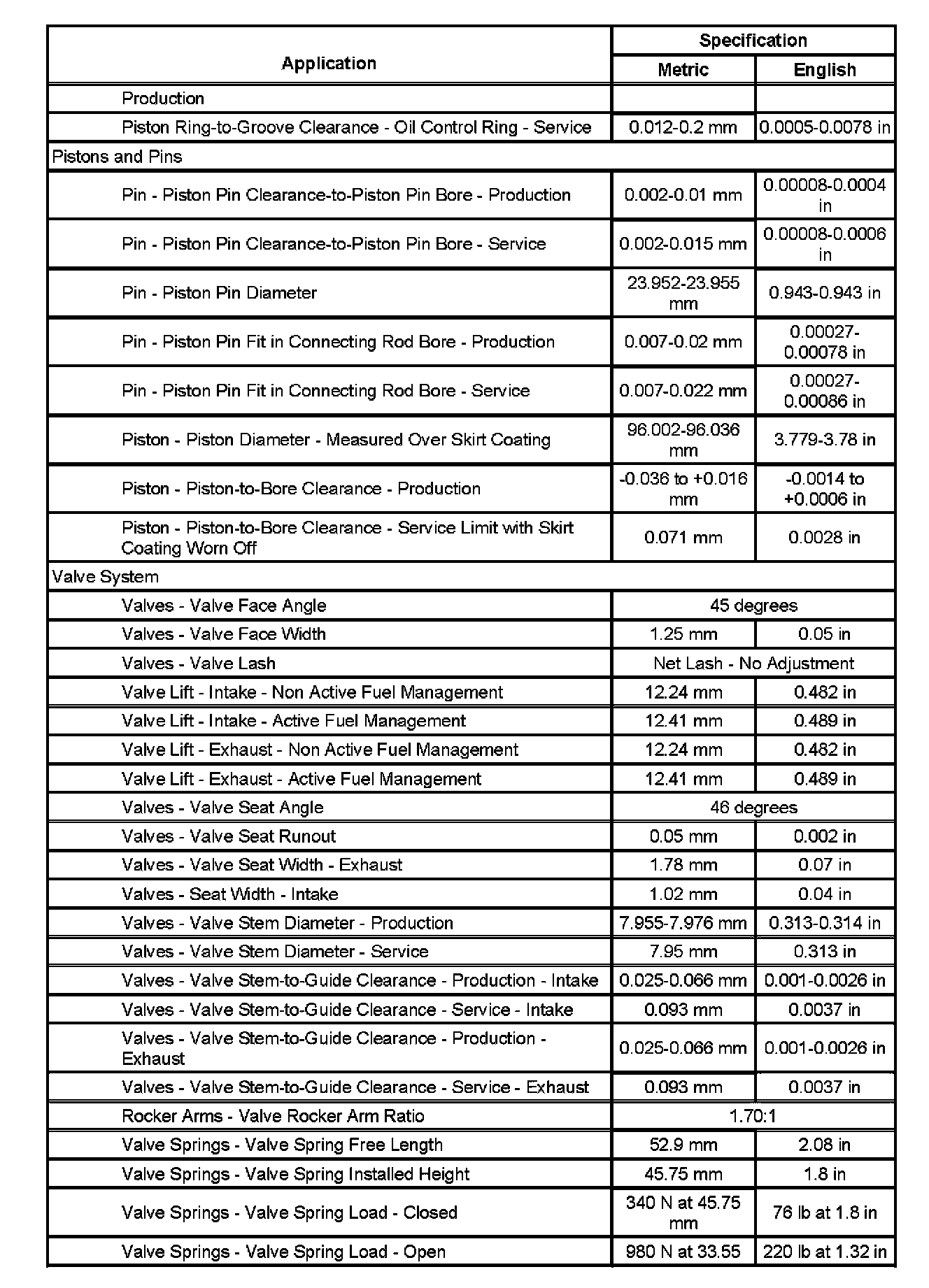 Engine Mechanical Specifications