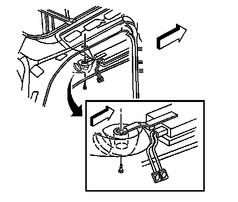4. Index the mounting hole on the antenna module grounding strap to the roof panel welded nut.
