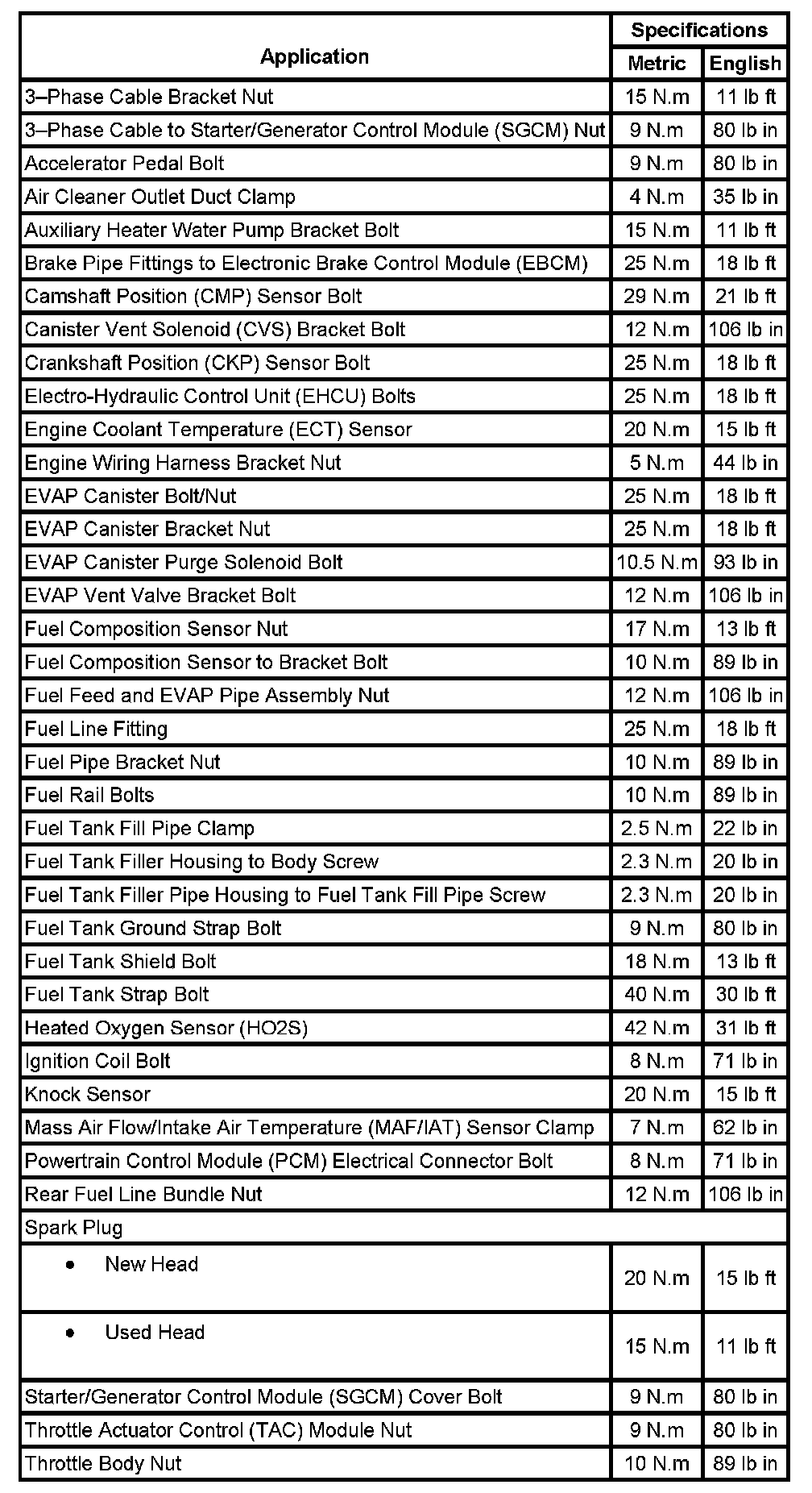 Fastener Tightening Specifications