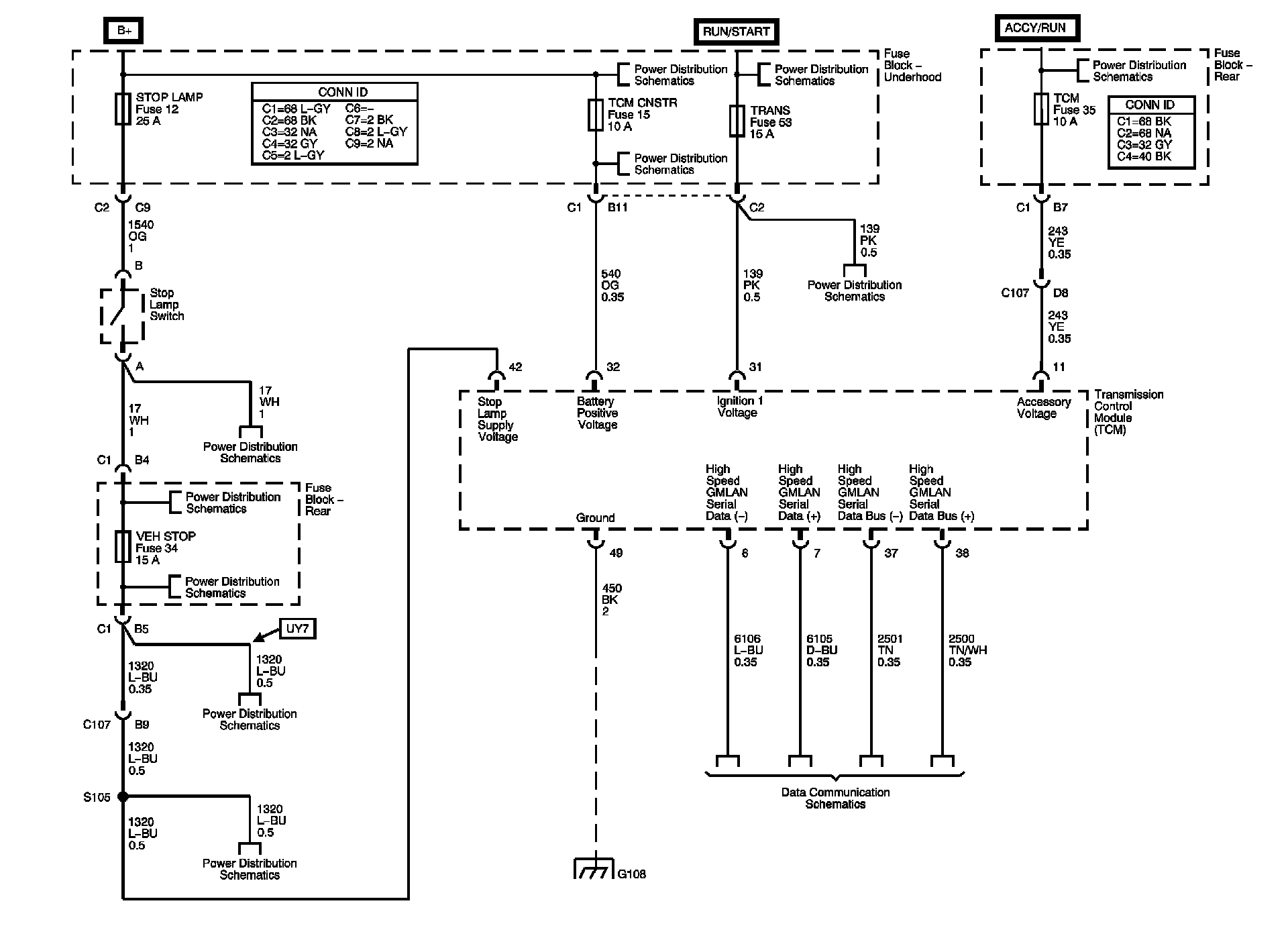 Module Power, Ground, Serial Data, and Stop Lamp Switch