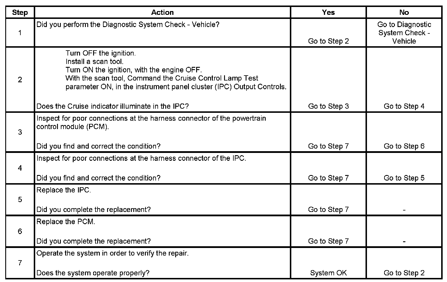 Cruise Control Indicator Inoperative (4.2L)