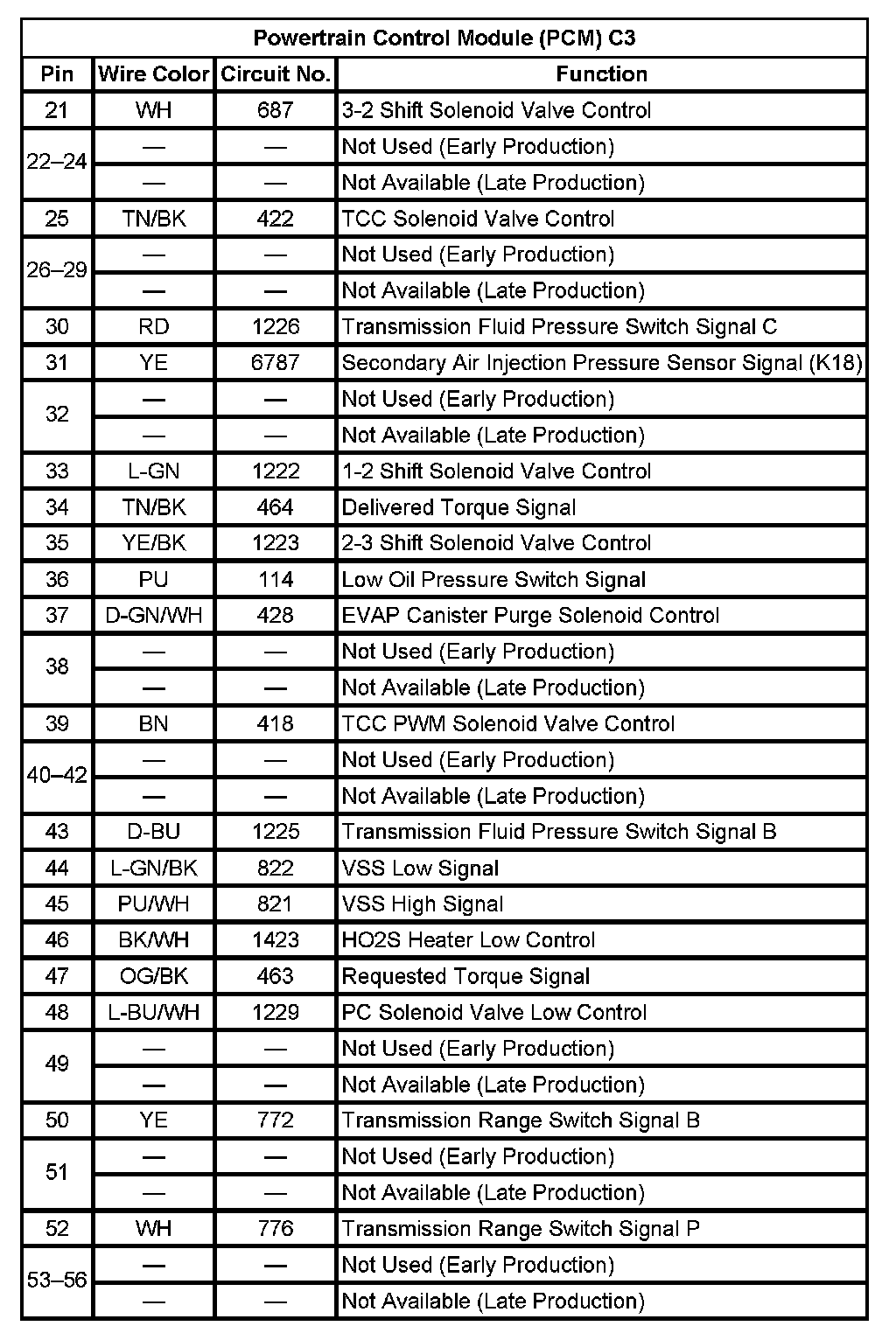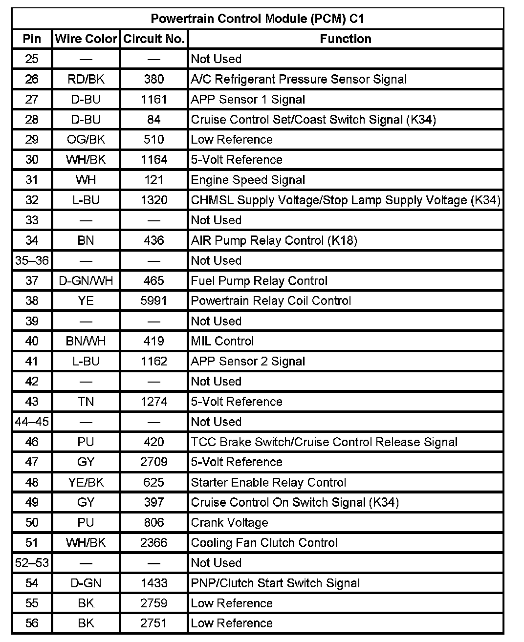 Powertrain Control Module (PCM) C1 (Pin 25 To 56):