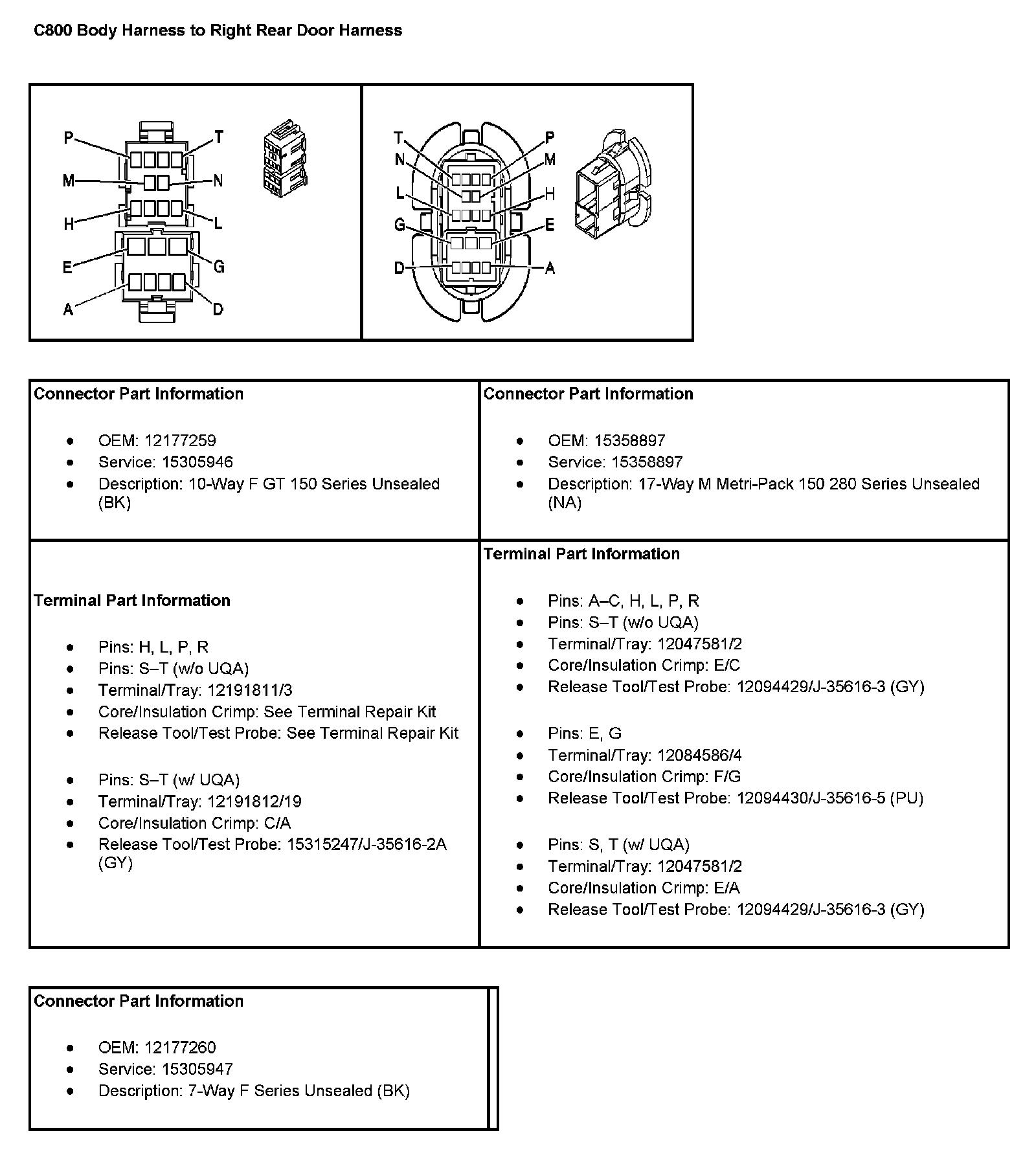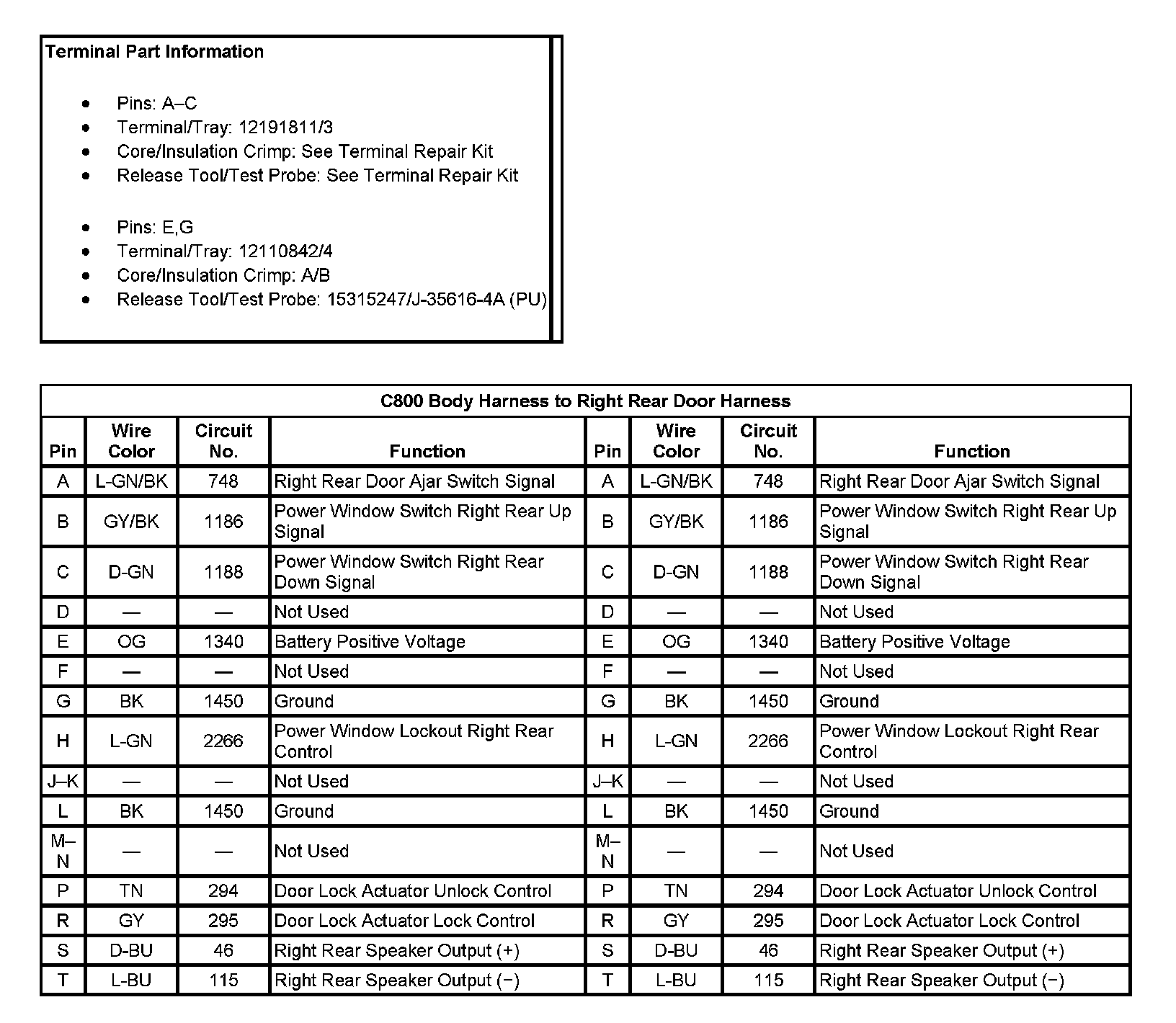 C800 Body Harness To Right Rear Door Harness (Pin A To T):