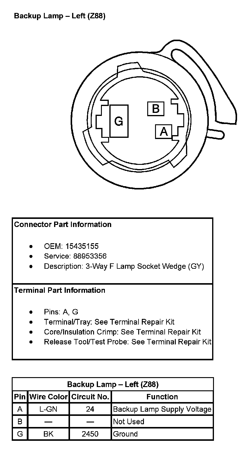 Backup Lamp - Left (With RPO Code Z88):