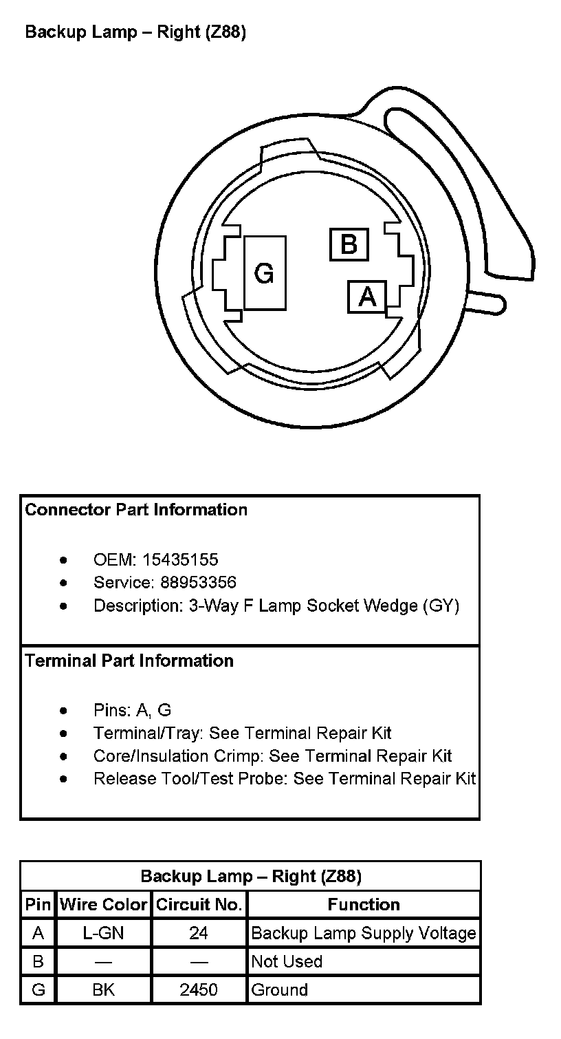 Backup Lamp - Right (With RPO Code Z88):