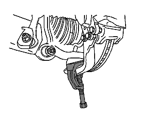 13. Pivot the lower control arm outward and downward in order to disconnect the lower control arm from the lower control arm bracket.
