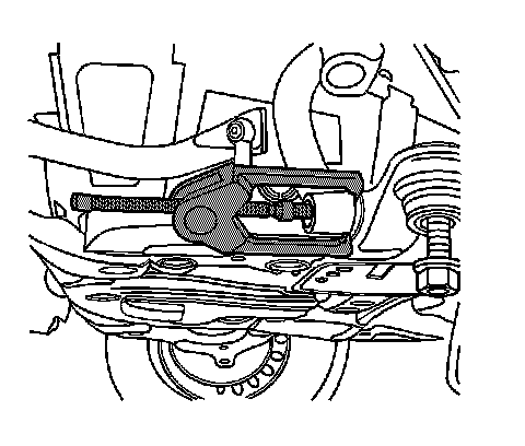 Important: Ensure that the lower control arm is parallel to the lower control arm bracket during the installation and tightening of the lower control arm mounting bolts and nuts. This will ensure correct alignment of the lower control arm bushings.