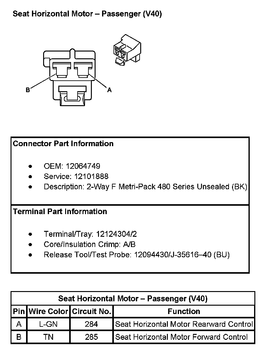 Seat Horizontal Motor - Passenger (With RPO Code V40):