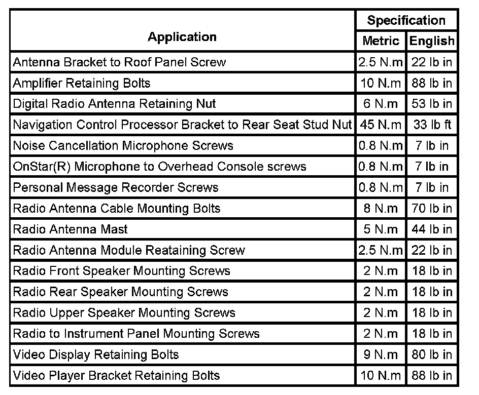 Fastener Tightening Specifications