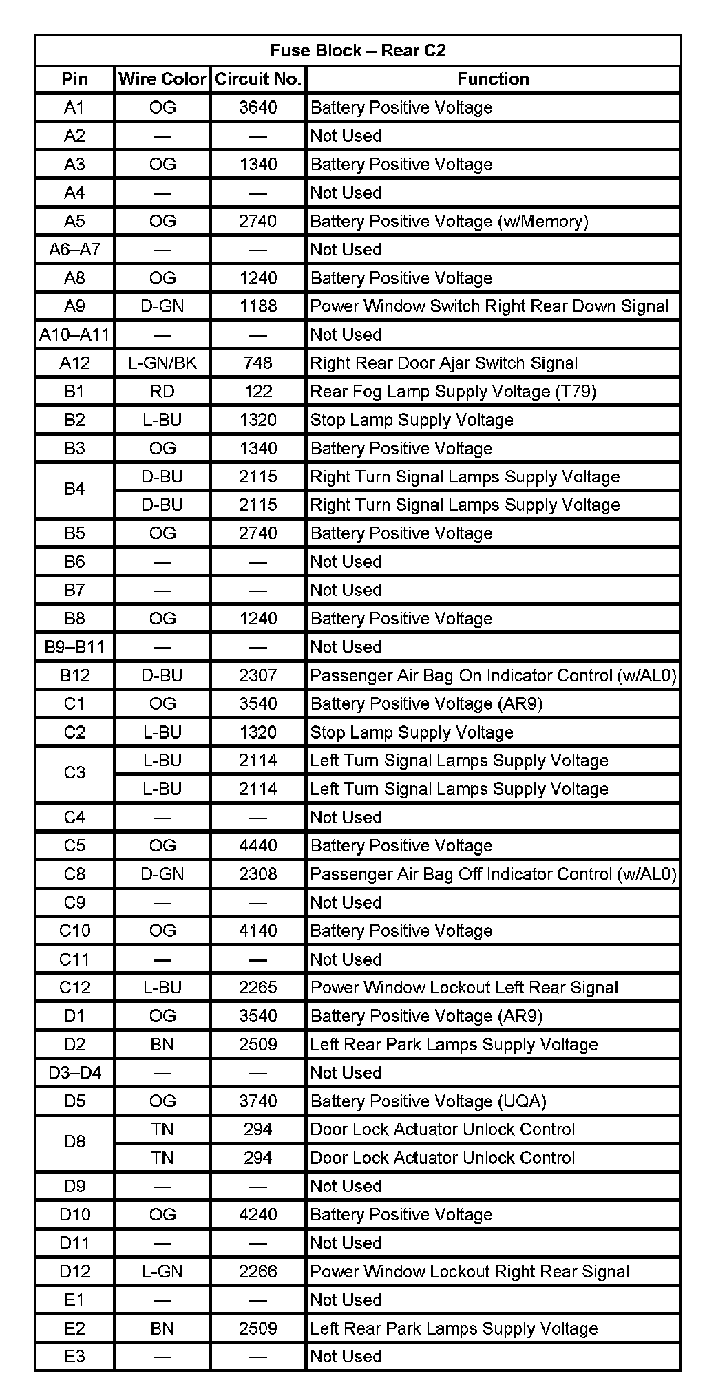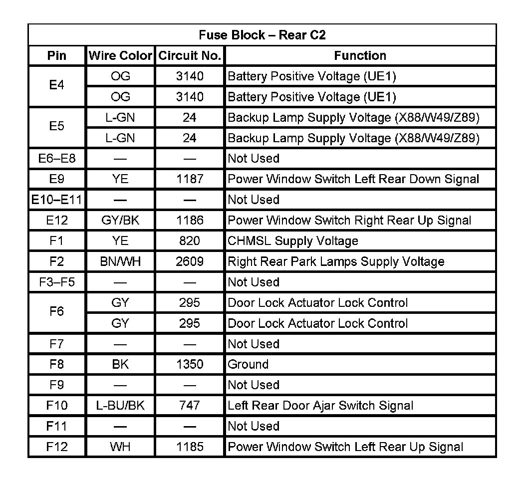 Fuse Block - Rear C2 (Pin A1 To E3):