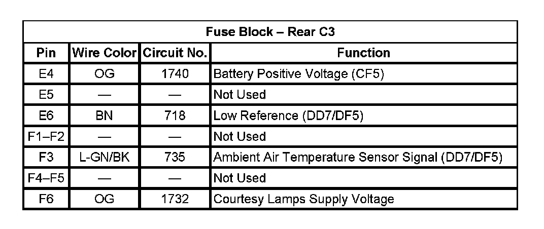 Fuse Block - Rear C3 (Pin E4 To F6):