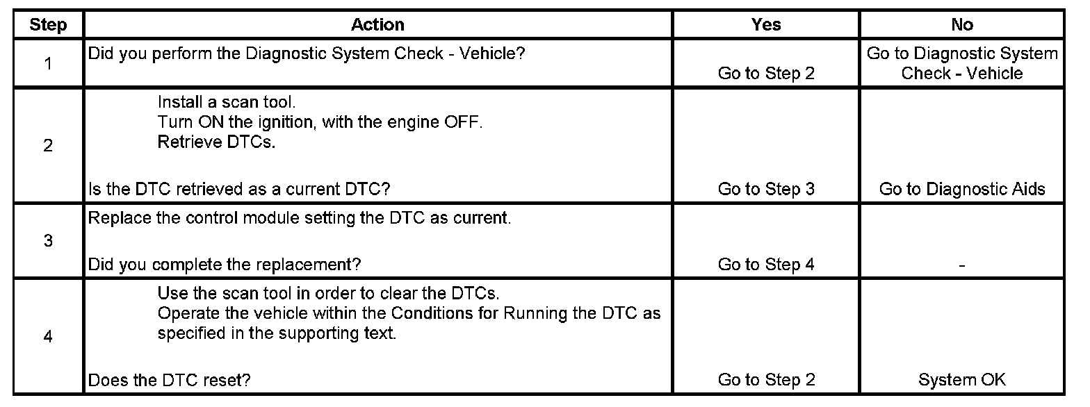 * This DTC may be stored as a history DTC without affecting the operation of the module. If stored only as a history DTC and not retrieved as a current DTC, do not replace the module.