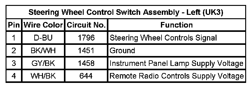 Steering Wheel Control Switch Assembly - Left (UK3)