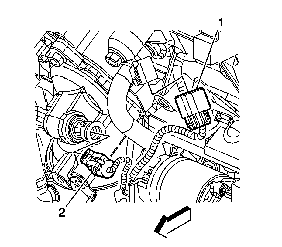 4. Disconnect the engine harness electrical connector (2) from the engine oil pressure sensor.
