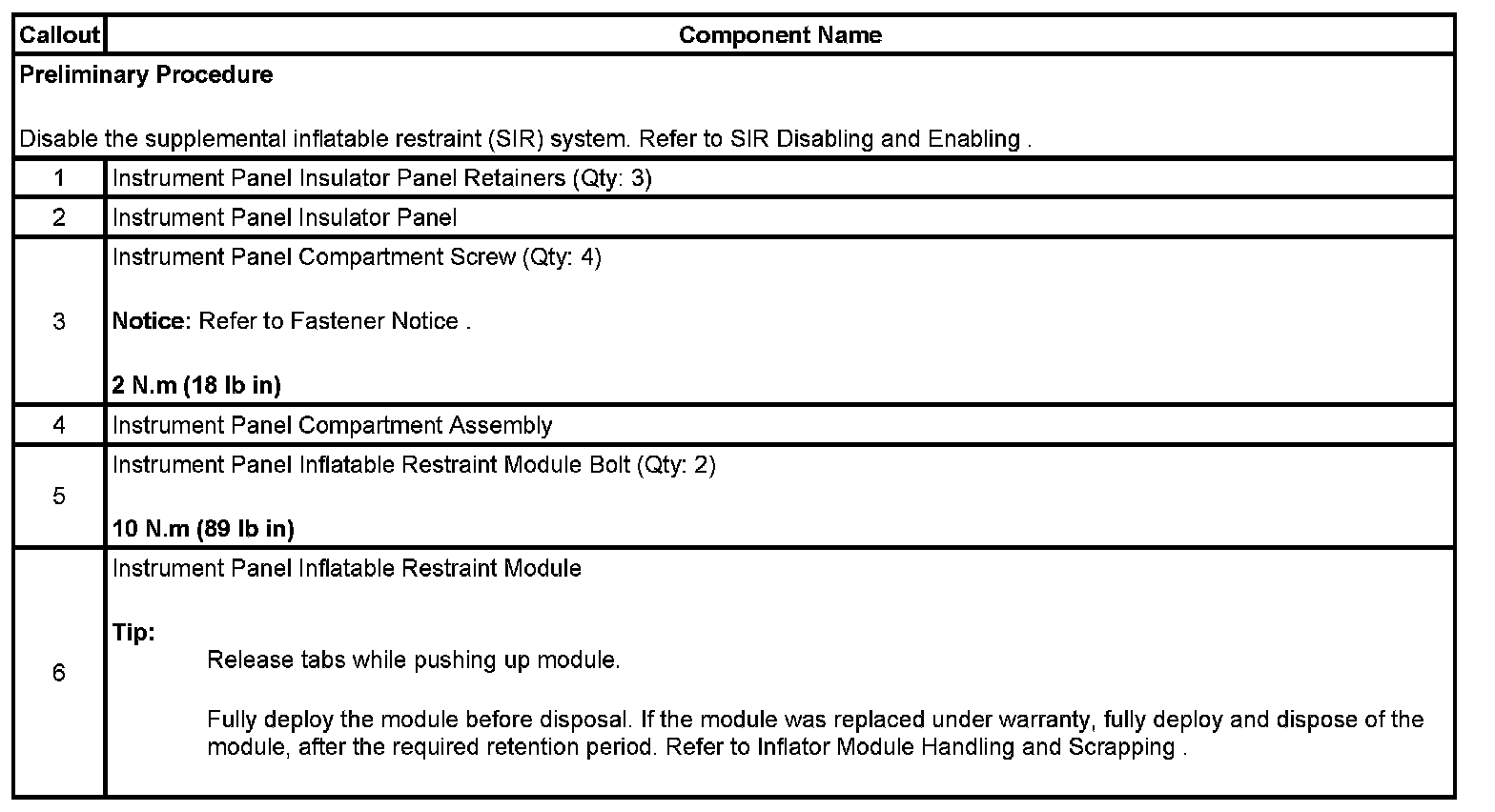 Inflatable Restraint Instrument Panel Module Replacement