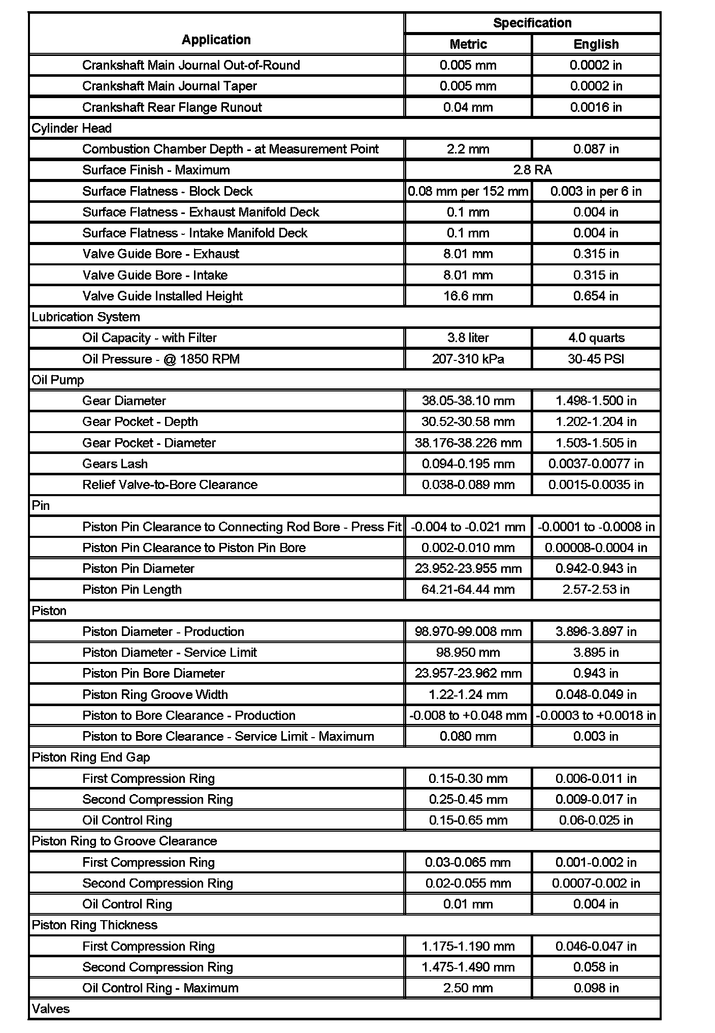 Engine Mechanical Specifications (Part 2):