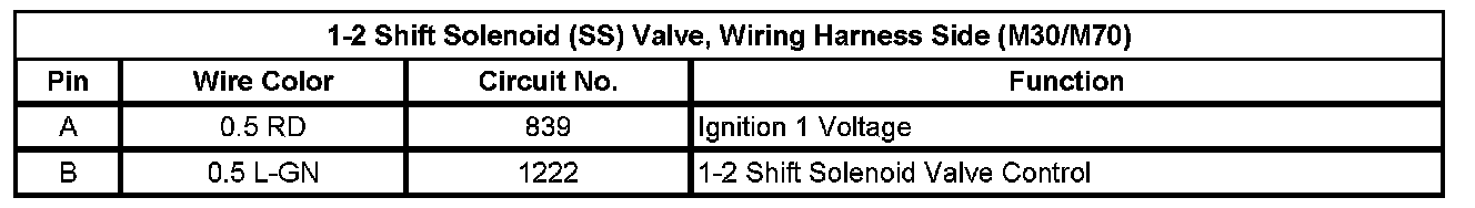 1-2 Shift Solenoid (SS) Valve, Wiring Harness Side (M30/M70)