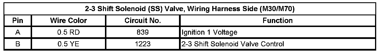 2-3 Shift Solenoid (SS) Valve, Wiring Harness Side (M30/M70)