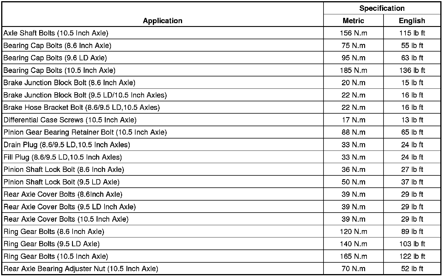 Fastener Tightening Specifications