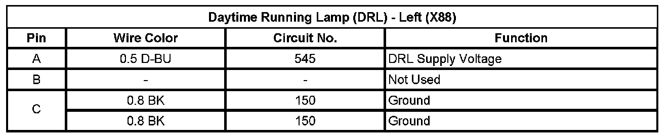 Daytime Running Lamp (DRL) - Left (X88)
