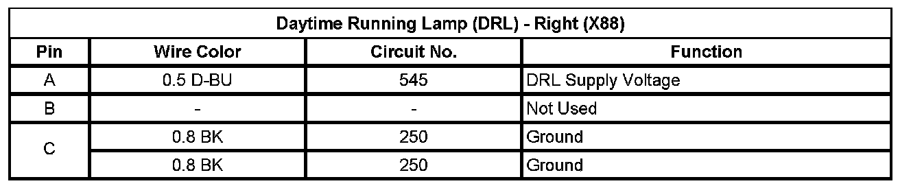 Daytime Running Lamp (DRL) - Right (X88)