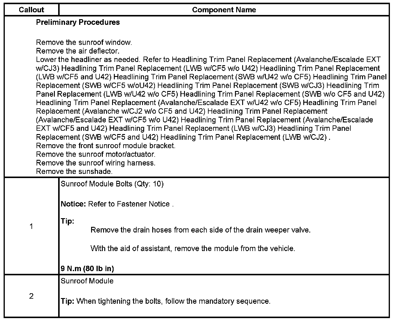 Sunroof Module Assembly Replacement